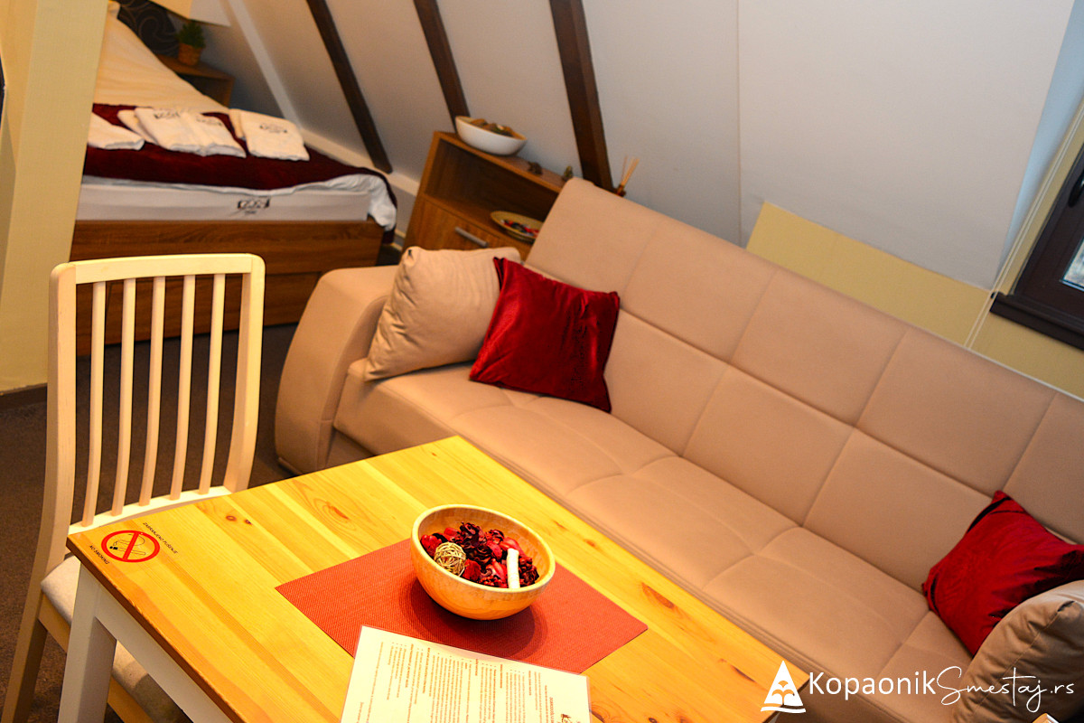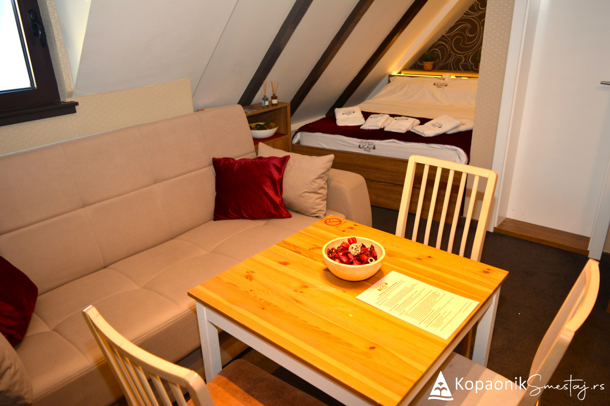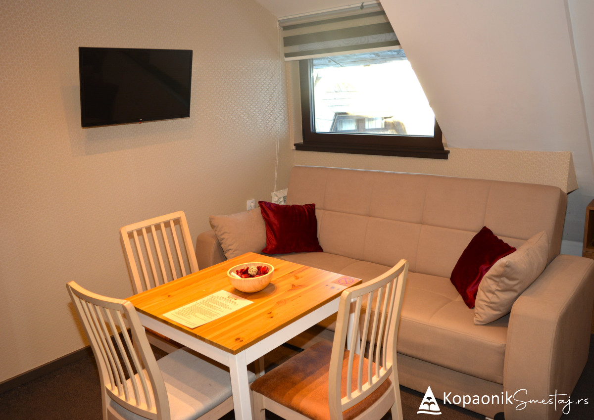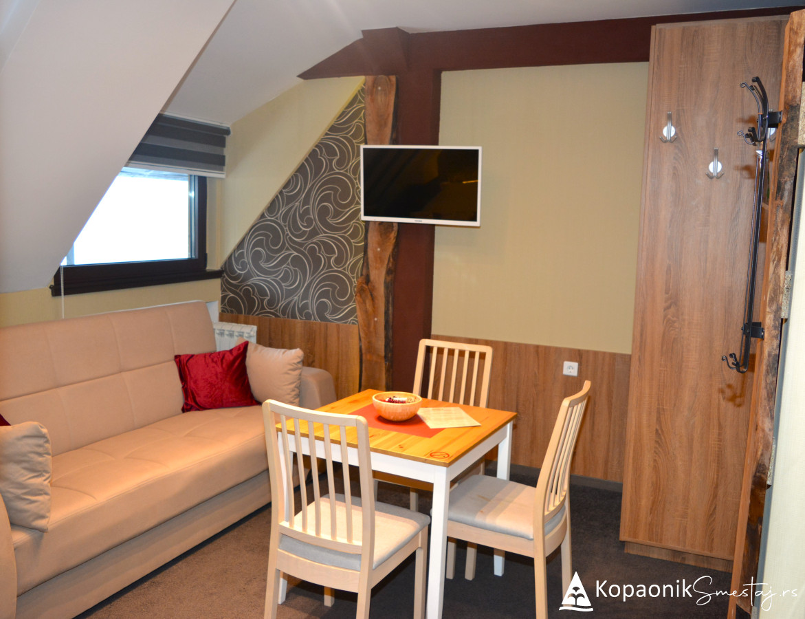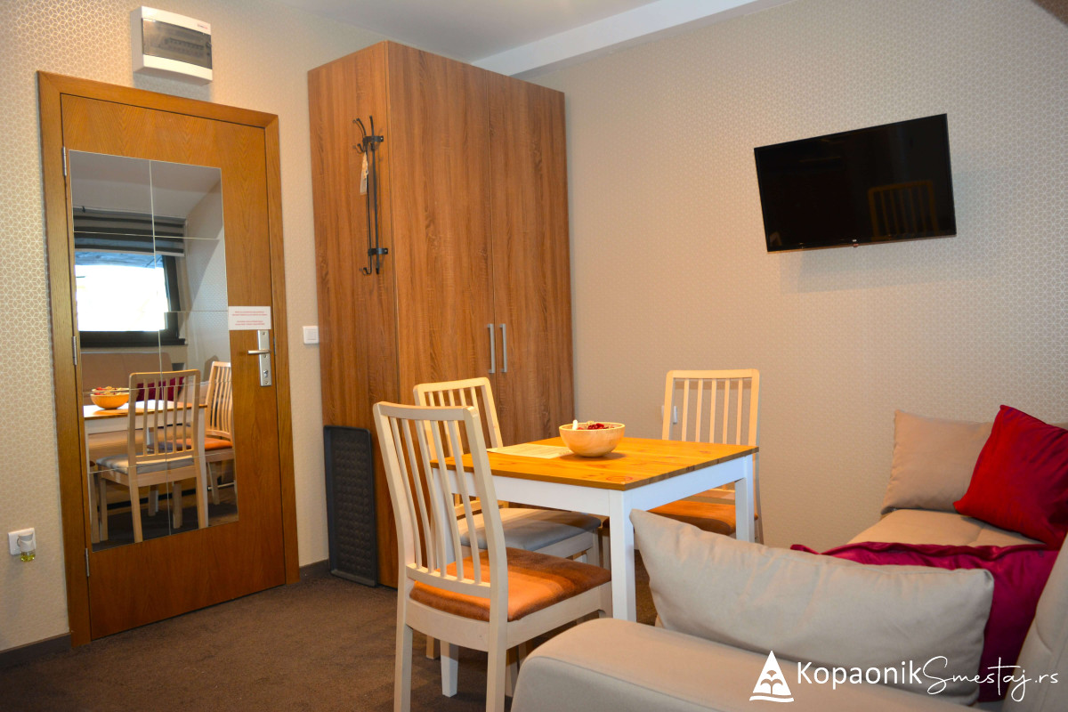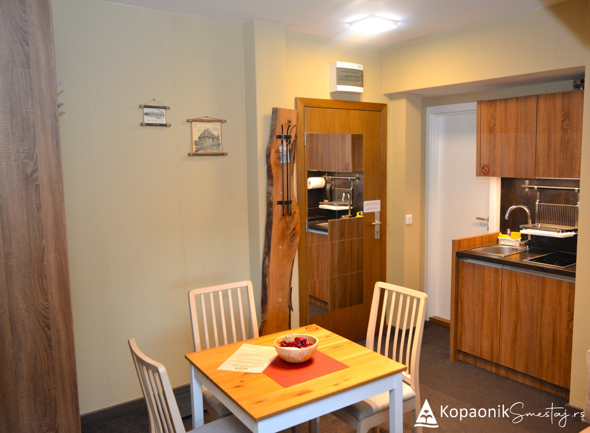 Renoviranje apartmana je u potpunosti inspirisano prirodom, odnosno prirodnim okruženjem Kopaonika, pa je tako kompletan enterijer izrađen od prirodnih drvenih materijala.